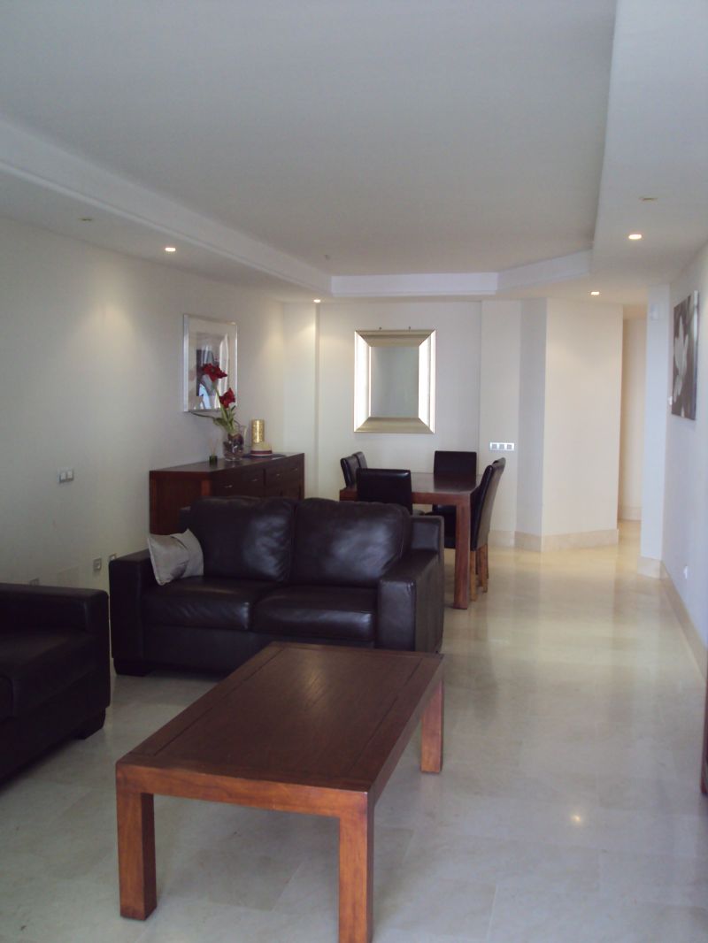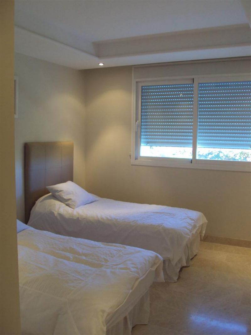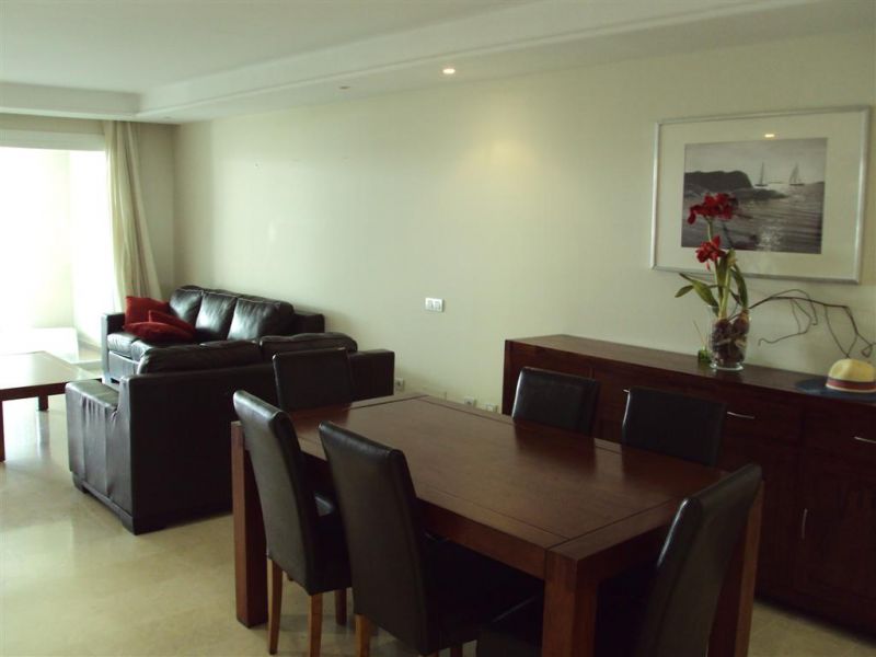 Front line beach ground floor apartment located in Guadalmansa Playa. This is a large 2 bedroom apartment with direct access from the terrace to the communal gardens and pool. There is a large living room with direct access to the terrace. Both bedrooms are en suite. There is a fully fitted kitchen with separate laundry area. The community has gymnasium, 24 hr security, large communal pool and direct access to the beach. The price has been reduced for a fast sale.